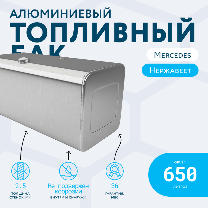 Алюминиевый бак не подвержен коррозии, что делает его более долговечным, а так же сбережет вашу топливную систему. Бак из алюминия в два раза легче стального бака, хотя он и изготовлен из листа увеличенной толщины в 2,5 мм. В конструкции предусмотрены цельные перегородки, которые проварены по периметру. Баки из алюминия так же оснащены заливной горловиной с самозапираемым непроливаемым клапаном (который становится барьером для разлива топлива, а так же становится защитой от попадания мусора в бак при открытой крышке) . Кроме того, однозначно что алюминиевый бак выглядит намного привлекательнее и дороже - где бак в том числе становиться и элементом тюнинга автомобиля. На алюминиеввые баки действует увеличенная гарантия - 36 месяцев.